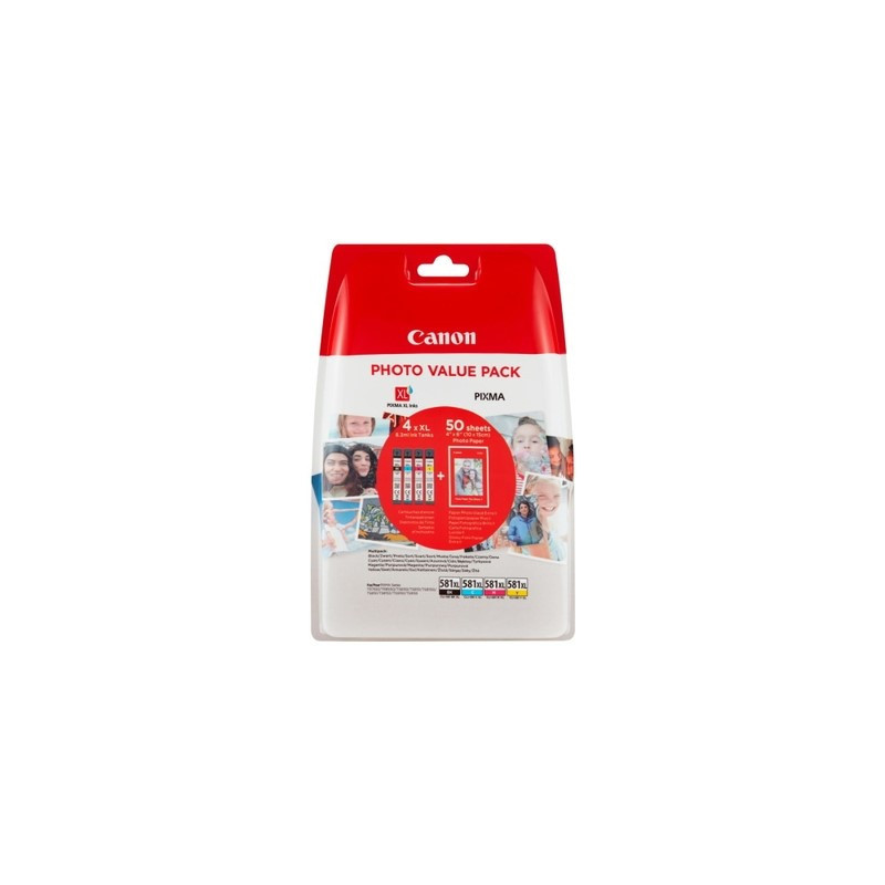 Désignation possible du produit : Canon 581XL Pack x 4 jet d'encre authentique + 50 papier photo 2052C006 Black Cyan Magenta Yellow